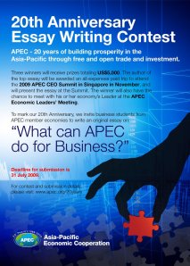 Dalam rangka memperingati 20 tahun berdirinya APEC, APEC menyelenggarakan perlombaan penulisan essay dengan topik “What can APEC do for Business?”
