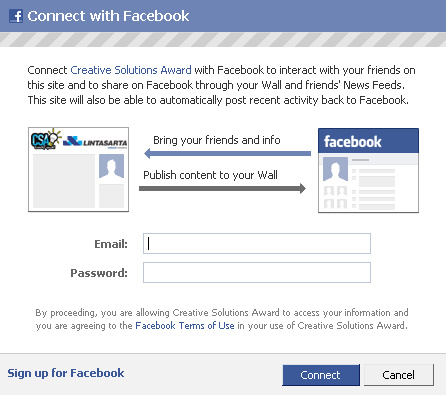 4. Bagi yang menggunakan FACEBOOK CONNECT isikan Email dan Password (sama dengan FACEBOOK Anda) dan klik tombol Connect