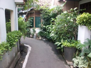 Begitu pertama kali datang, kami disuguhkan dengan tanaman-tanaman yang begitu hijau. Perjalanan yang membuat keringat bercucuran dibayarkan dengan tanaman-tanaman yang begitu hijau dan pohon yang membuat suhu panas kota Jakarta langsung menghilang begitu masuk ke Gang Swadaya. Setiap sudut Gang Swadaya yang hijau sejuk di pandang mata.