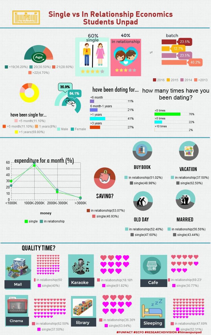 The longest duration of being single is more than a year. While, had been dated for 5 times is the highest relationship frequency.