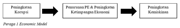 Dari peraga diatas dapat kita lihat Economic Model sendiri melihat korupsi dapat mempengaruhi penurunan pertumbuhan ekonomi. Dengan pertumbuhan ekonomi yang menurun, kemungkinan dalam ketimpangan ekonomi meningkat. Dengan meningkatnya ketimpangan ekonomi membuat tingkat kemiskinan ikut meningkat.