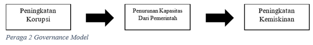 Pandangan “Governance Model” beranggapan bahwa korupsi membuat penurunan kapasitas dari pemerintah. Hal ini dapat berupa, menurunnya partisipasi warga negara dalam demokrasi dan kebijakan pemerintah, juga dapat berupa buruknya institusi pemerintahan. Pada intinya hal ini berkaitan dengan tidak konsekuennya pelaksanaan dari good governance. Penurunan implementasi good governance akan menurunkan kualitas dari pelayanan publik sehingga terganggunya pemerintahan. Penurunan pelayanan publik dapat membuat kemiskinan menjadi lebih rentan, karena hilangnya trust (kepercayaan) dari masyarakat. Hilangnya trust akan menurunkan insentif di masyarakat untuk turut serta dalam penurunan kemiskinan (Chetwynd et al., 2003).