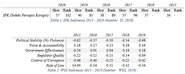 Gejala penyalahgunaan kekuasaan yang melekat dan mungkin telah menjadi “borok besar” pada setiap negara di dunia adalah korupsi. Korupsi merupakan hal yang sepanjang waktu mendegradasi marwah dari mereka yang diamanati kuasa dan wewenang yang diberikan oleh rakyat. Negara – negara besar di dunia, seperti Amerika Serikat tak luput terjangkit penyakit kekuasaan ini (Dincer & Gunalp, 2011a). Begitu juga Indonesia negara yang notabene merupakan negara berkembang juga terjangkit akan penyakit menahun ini. Tak lekang dari ingatan beberapa bulan lalu KPK menangkap dua Menteri dalam jajaran Kabinet, yaitu Edhie Prabowo (Mantan Menteri Kelautan & Perikanan) dan Juliari P. Batubara (Mantan Menteri Sosial) dalam waktu yang hampir berdekatan. Maka tidak mengherankan pada 2020 IPK (Indeks Persepsi Korupsi Indonesia anjlok ke urutan 102 dunia.