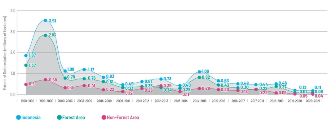 Gambar 2. Tren Deforestasi Indonesia 1990 – 2021 (KLHK, 2022)