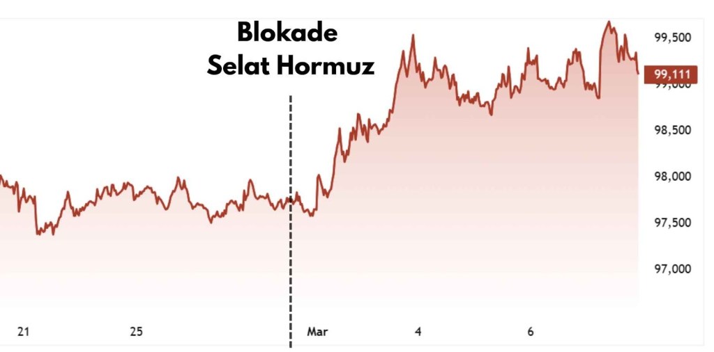 Ketegangan geopolitik di kawasan Timur Tengah memiliki implikasi langsung terhadap harga energi global karena wilayah ini merupakan salah satu pusat produksi dan distribusi minyak dunia. Ketika konflik militer meningkat, pasar energi biasanya merespons dengan memasukkan geopolitical risk premium ke dalam harga minyak. Premi risiko ini mencerminkan kekhawatiran pasar terhadap potensi gangguan produksi maupun distribusi energi dari kawasan tersebut. Peningkatan pengawasan atau pembatasan oleh Iran terhadap lalu lintas kapal di jalur ini dapat menimbulkan risiko gangguan pasokan minyak dari kawasan Teluk Persia ke pasar internasional, sehingga mendorong pasar memasukkan geopolitical risk premium ke dalam harga minyak.