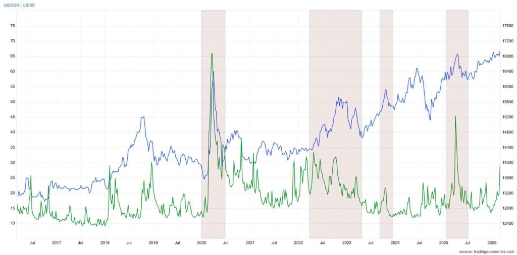 Gambar 5. Volatilitas Global dan Pergerakan Nilai Tukar Rupiah 2016-2026