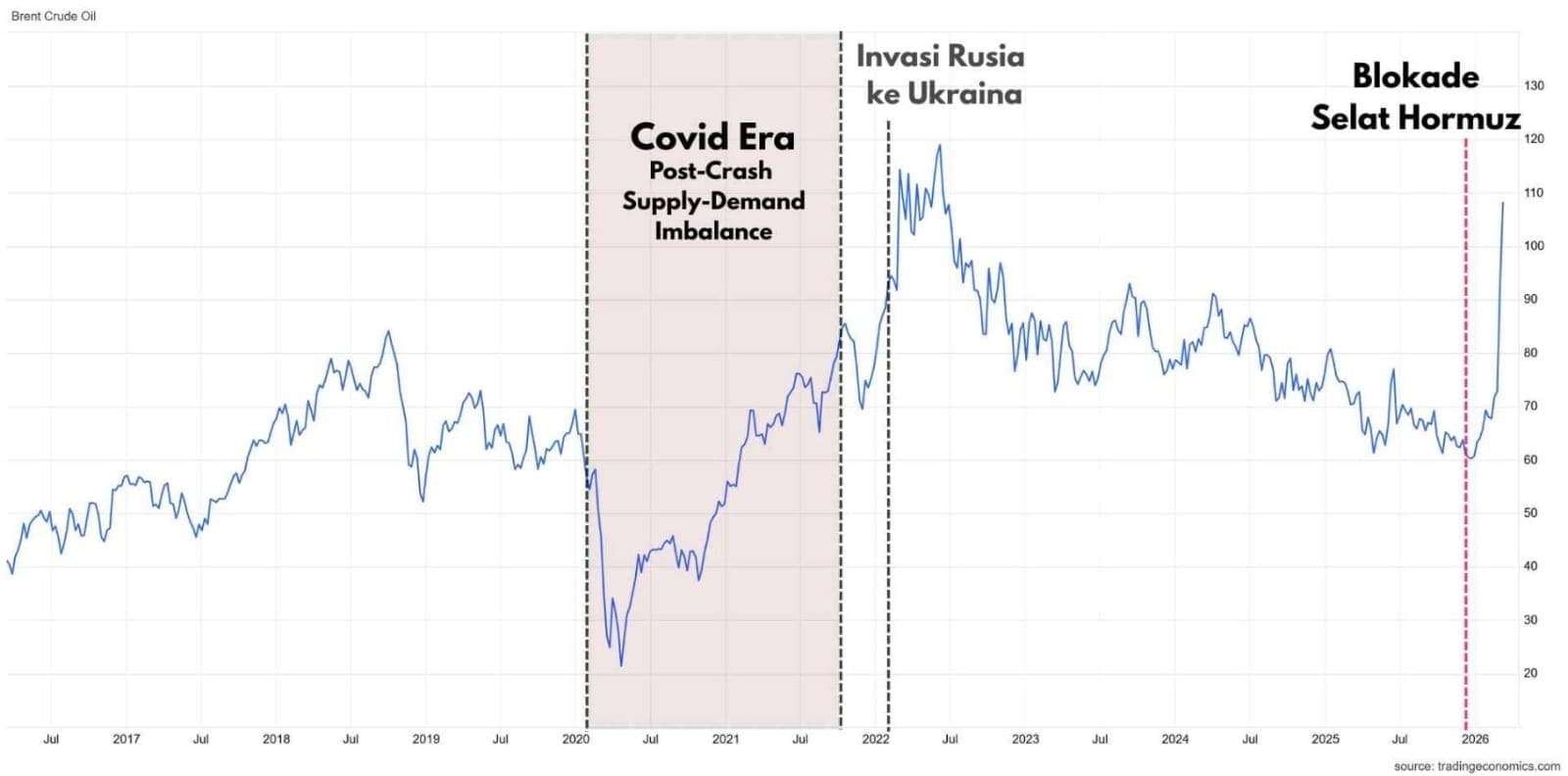 Gambar 1. Pergerakan Harga Minyak Brent 2016–2026