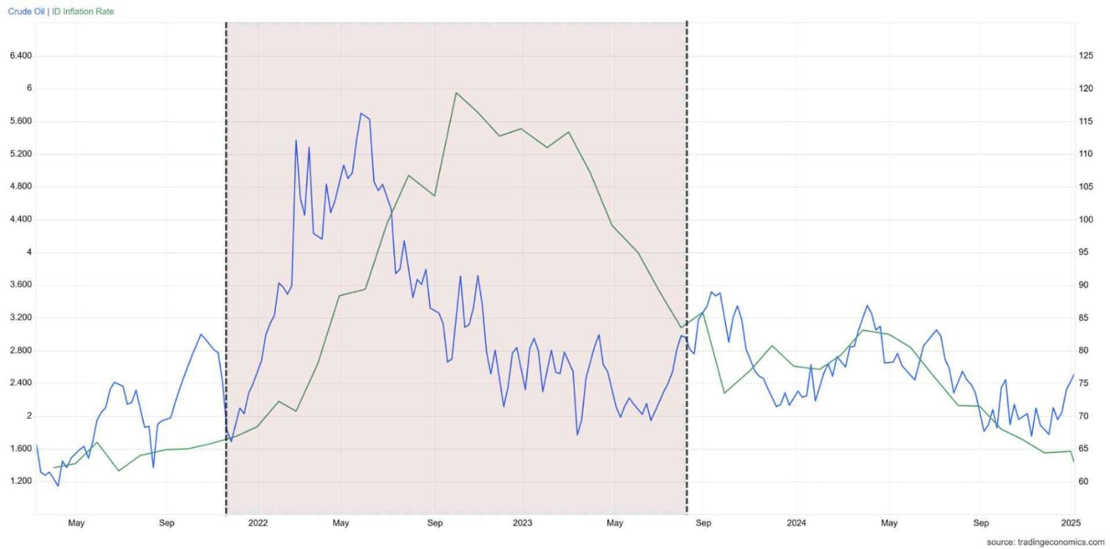 Gambar 6. Pergerakan Harga Minyak dan Inflasi Indonesia 2021-2025